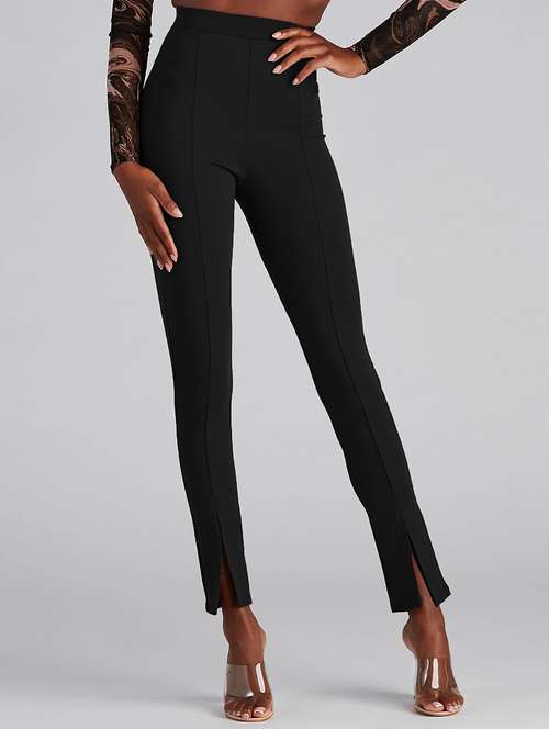 Step up your everyday look with these chic and trendy high-rise pants. This is an ankle length trouser pant with front cut high waist and an elastic waistband. ADDYVERO present slim fitting throughout. Details : Ankle length, Elastic at waist, Front seam detail, Pencil pant, High rise pant, Slim fitting, Straight leg, Stretchy fabric, Vertical seam, Split hem design, Form-hugging fit. Runs true to size