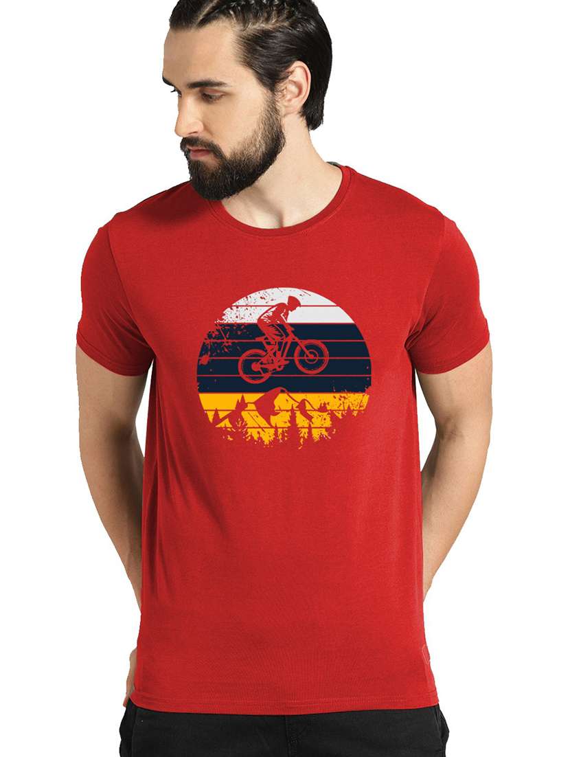 red cotton blend t-shirt