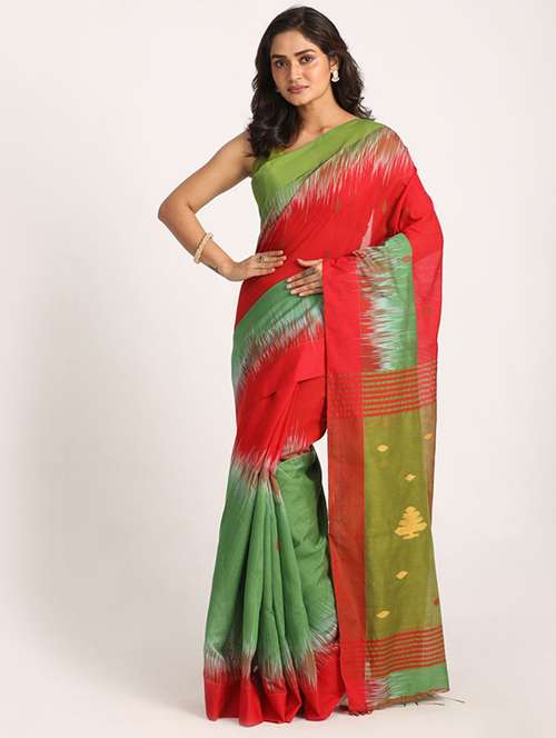 red & green handloom saree with blouse