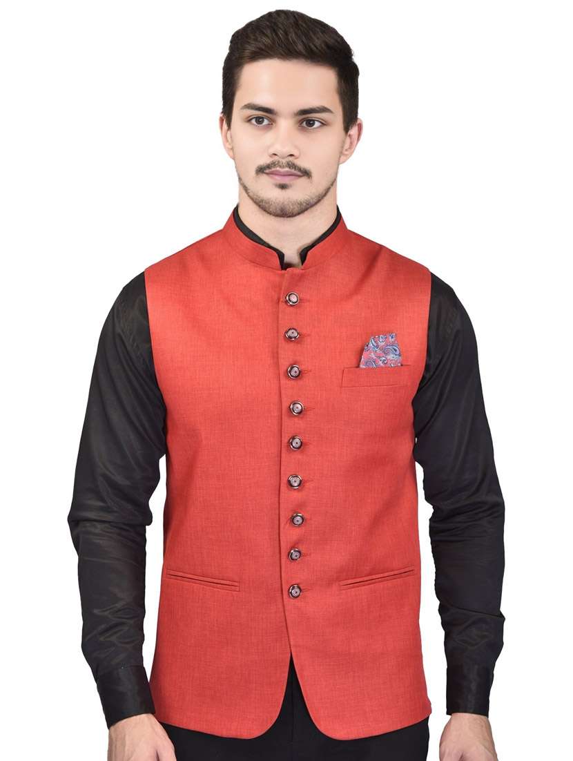 - » men solid mandarin neck sleeveless nehru jacket