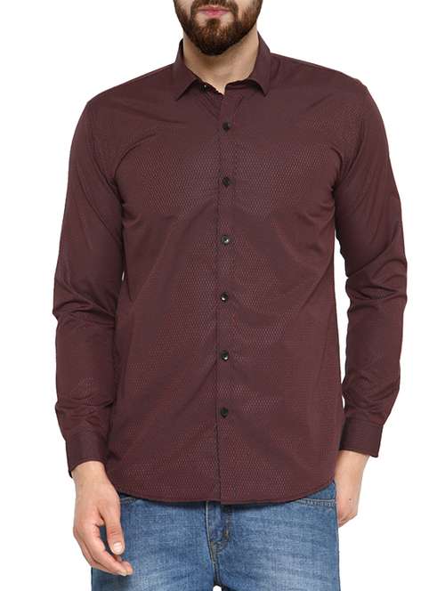 red cotton blend printed casual shirt