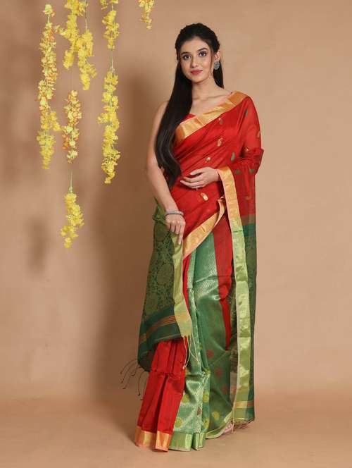 red self design woven saree with blouse - 19498295 - Very Small Image - 1