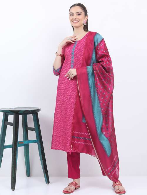 - Find gorgeous sets of ethnic wears in trending designs in pink colors suitable for casual wear of occasions.