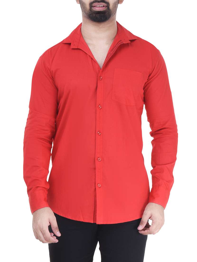 red cotton blend casual shirt