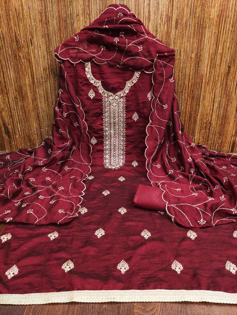 - Look ultra gorgeous in unstitched suits from Leeli Peeri Designer and grab these beautiful suits in maroon colour.