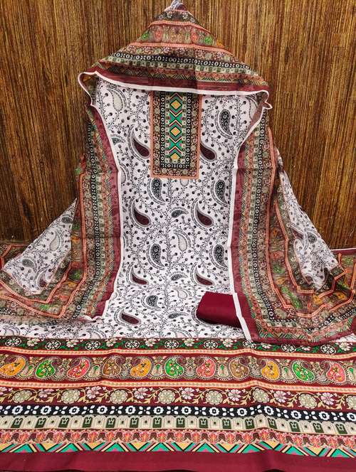 women printed embroidered unstitched suit set