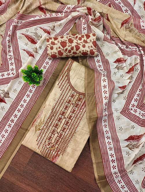 • Look ultra gorgeous in unstitched suits from Leeli Peeri Designer and grab these beautiful suits in beige colour.