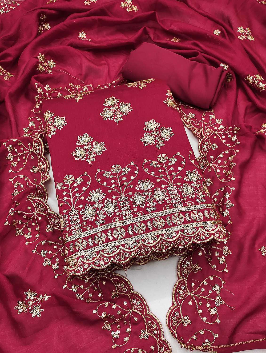 women solid with work embroidered unstitched suit set