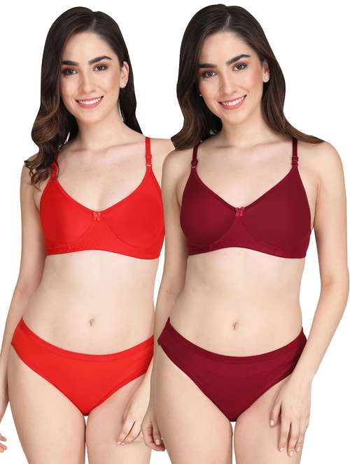 Liigne Women Everyday Non Padded Bra Panty Set (Pack Of 2) - This Lingerie Set Made of Pure Cotton