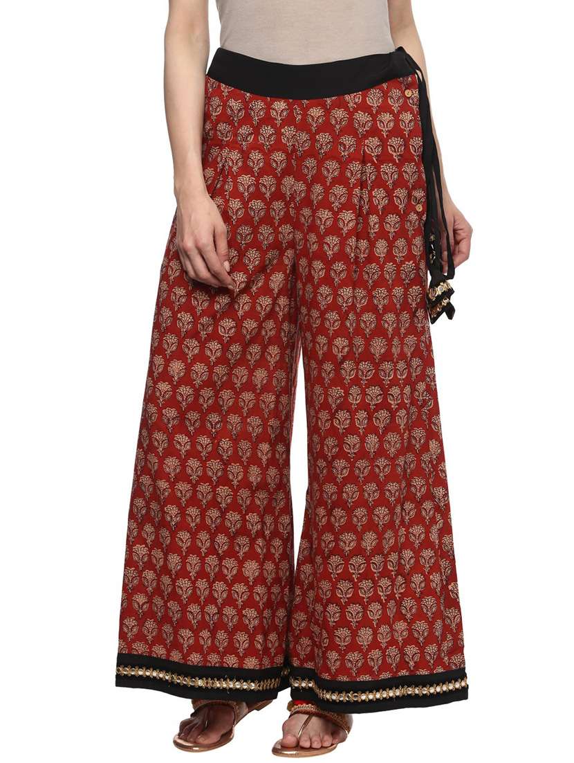 - » women red cotton blend wide leg