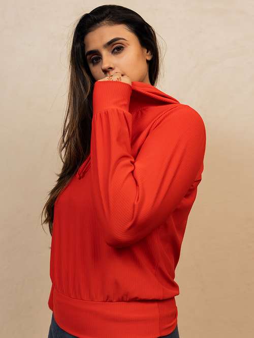 - Recreate your winter style with the all new frisky design options of sweatshirts available in red shades and hues to brighten up the chilly days.