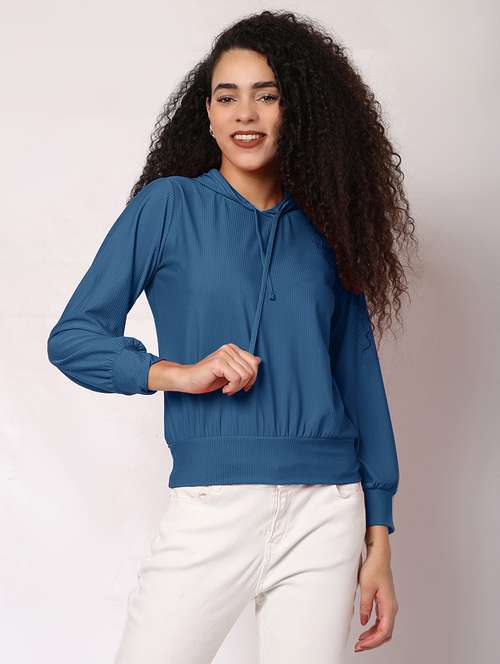 - » women solid long sleeve hooded sweatshirt