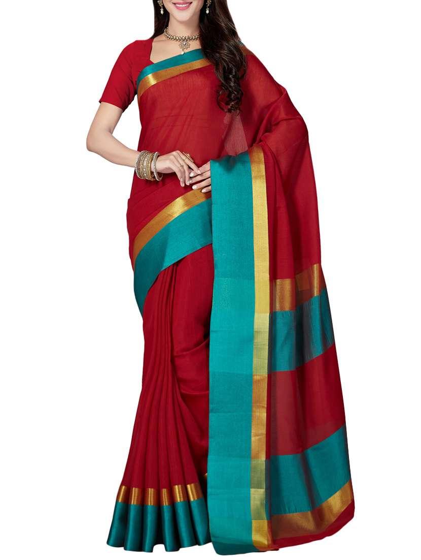 - » red cotton blend maheshwari saree with blouse