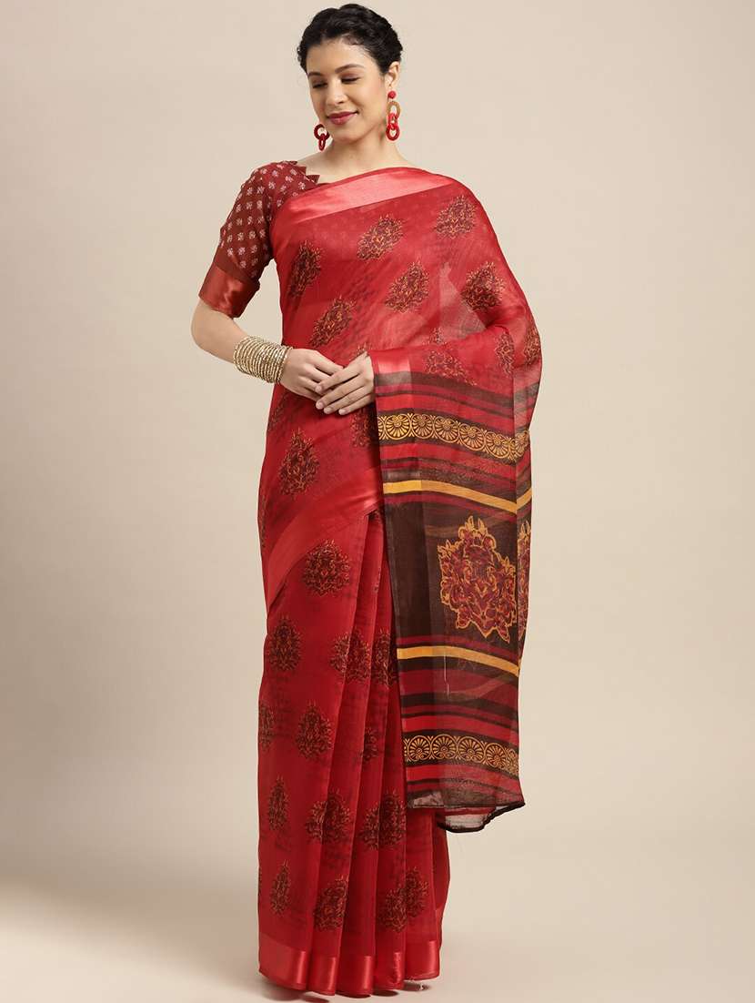 women's block print maroon colored saree - 18281922 - Very Small Image - 1