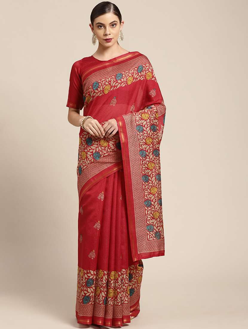 - » women's floral red colored saree