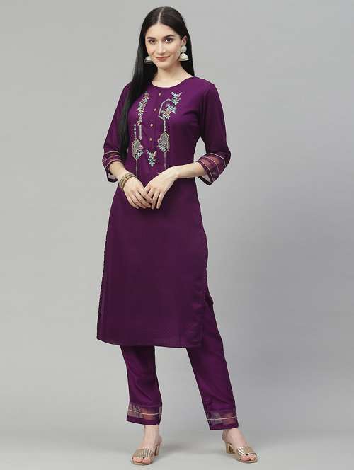 - Find gorgeous sets of ethnic wears in trending designs in purple colors suitable for casual wear of occasions.