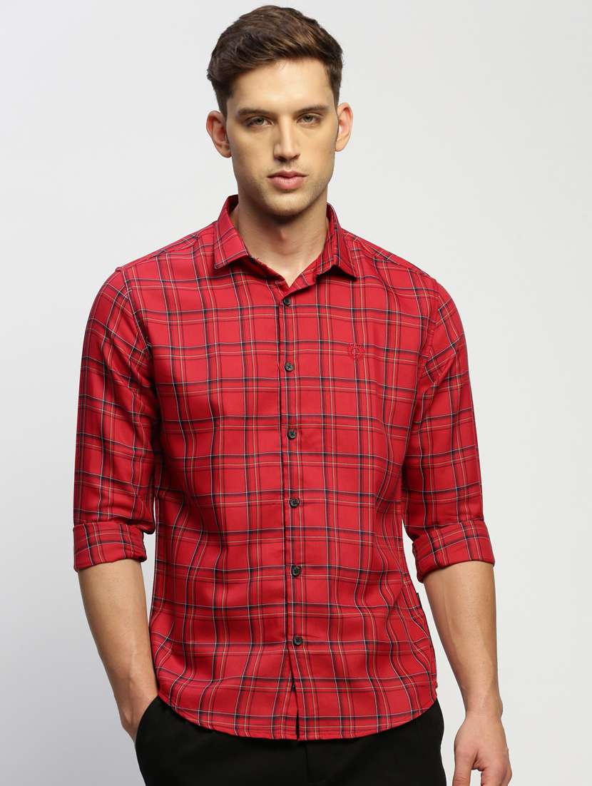 men tartan checkered red cotton blend casual shirt