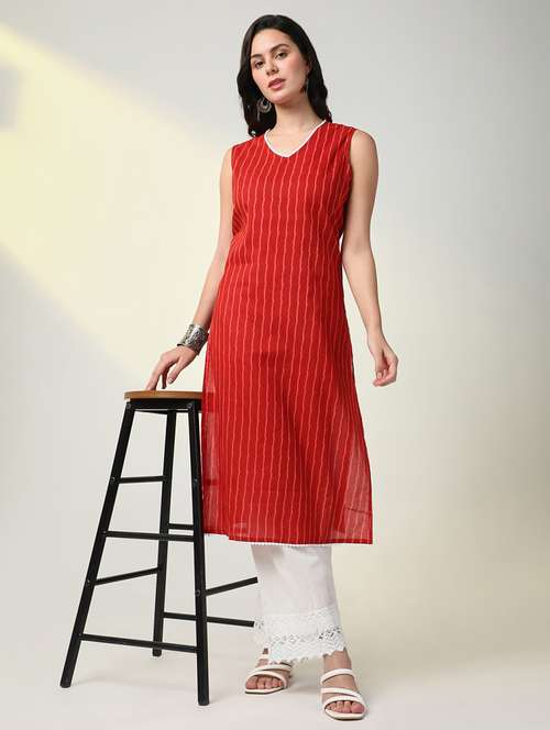 • Find gorgeous sets of ethnic wears in trending designs in red colors suitable for festive wear of occasions.