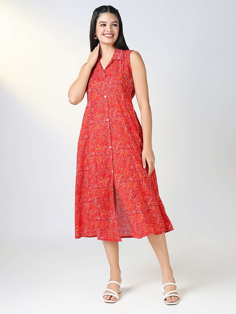 - » women floral printed sleeveless a-line dress
