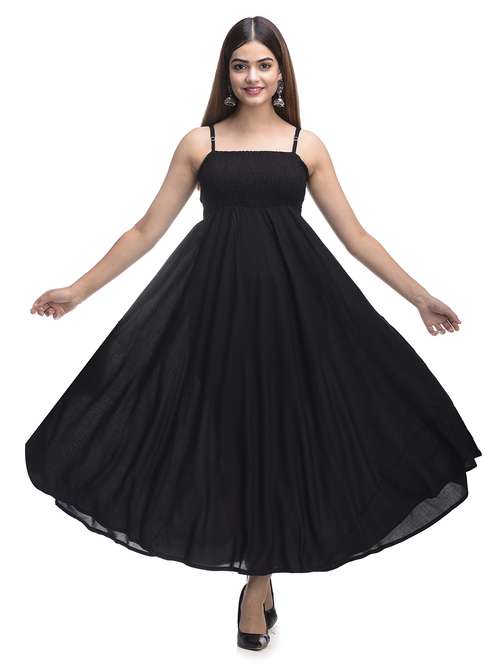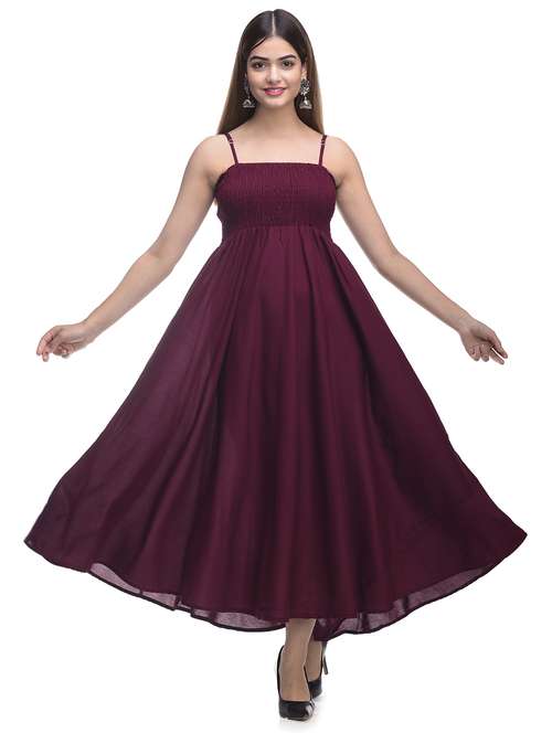 This Dress From SMART BUTTON offerings will your personal style to new heights. Pair this solid piece with an incredible statement Bag & heels for a cute Fashion-forward look running errands look. solid Gown, has elasticated gathering/smoking pattern, shoulder straps, criss-cross lacing on the back & flared hem.