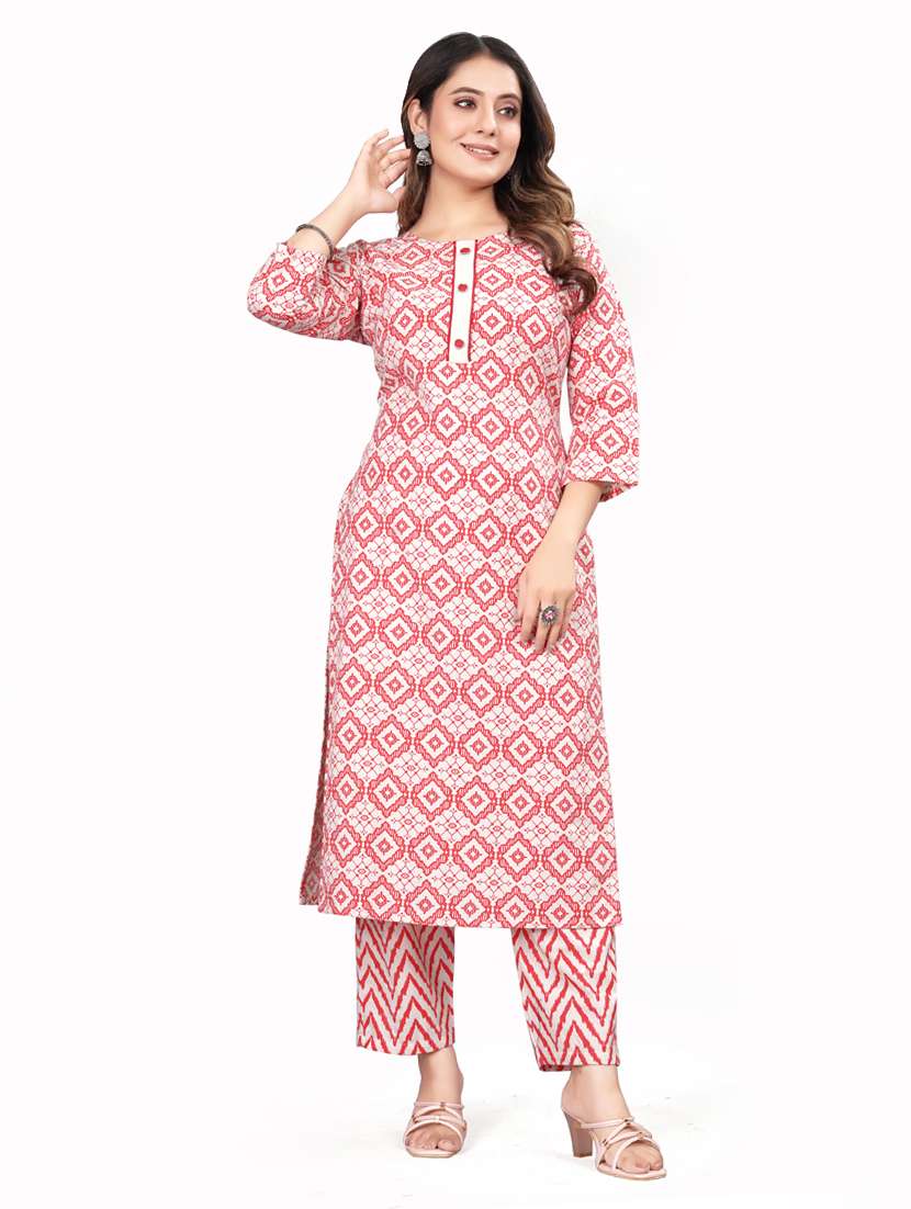 women red round neck kurta palazzo set