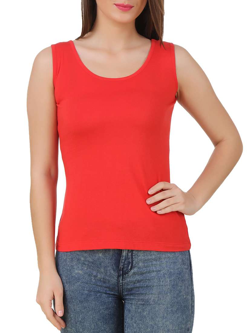 red cotton blend tank top