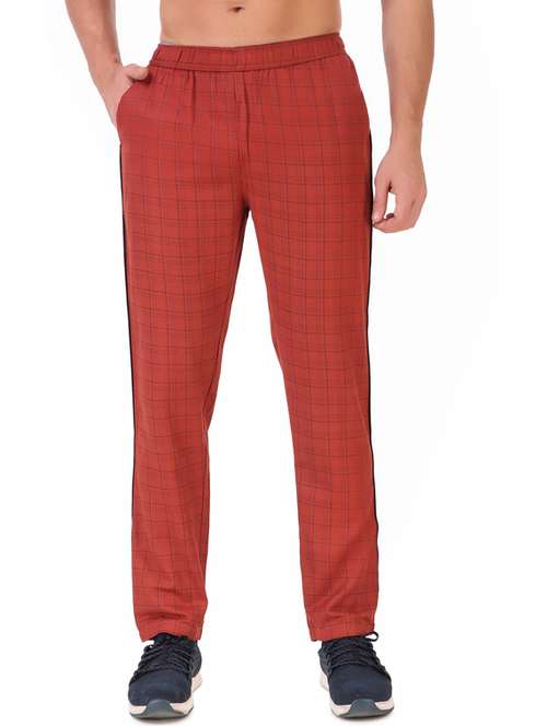 - » red cotton blend full length track pant