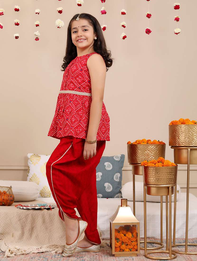 - » girls bandhani printed kurta and dhoti pant set