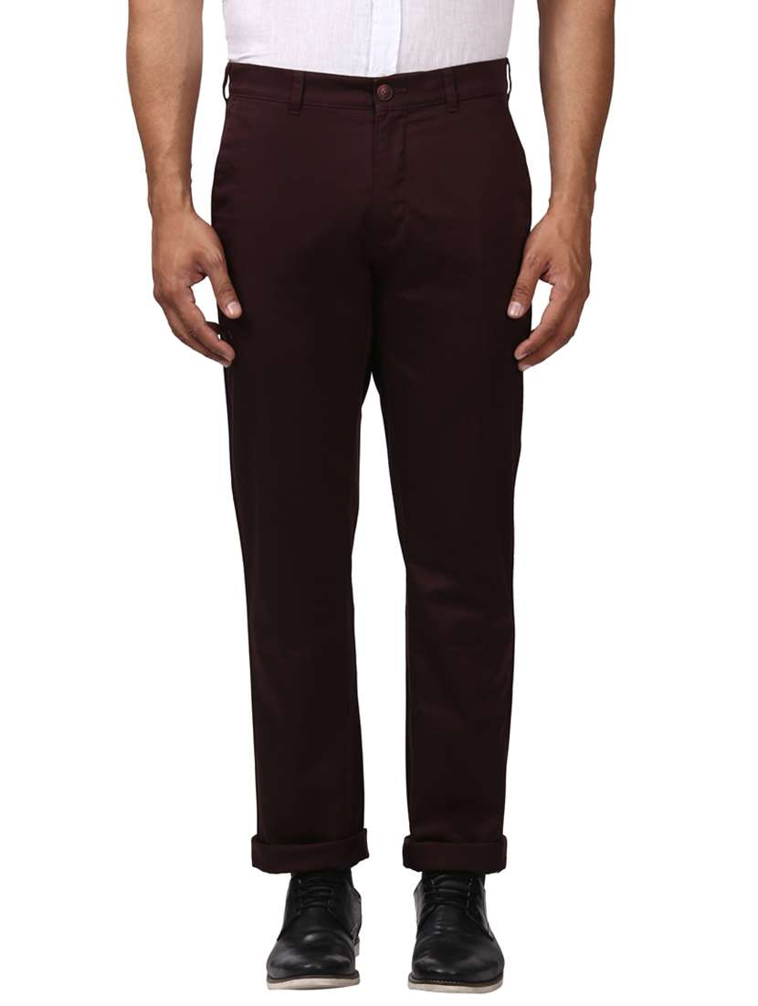 - » maroon solid flat front casual trouser