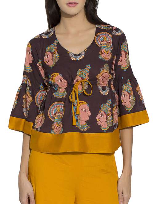 - Look trendy wearing this top from Desi Weavess and get this awesome collection in brown colour.