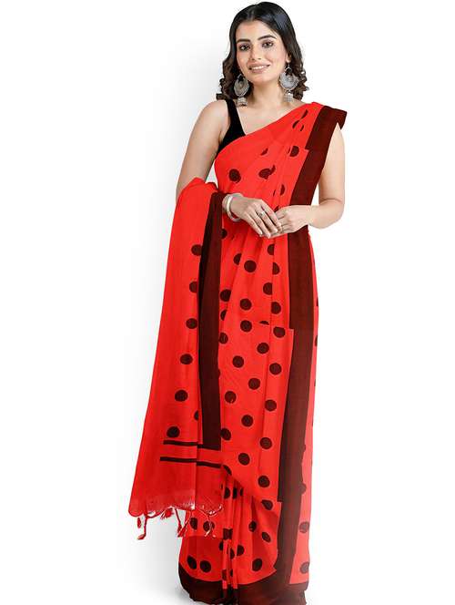 - » red polka dot printed saree