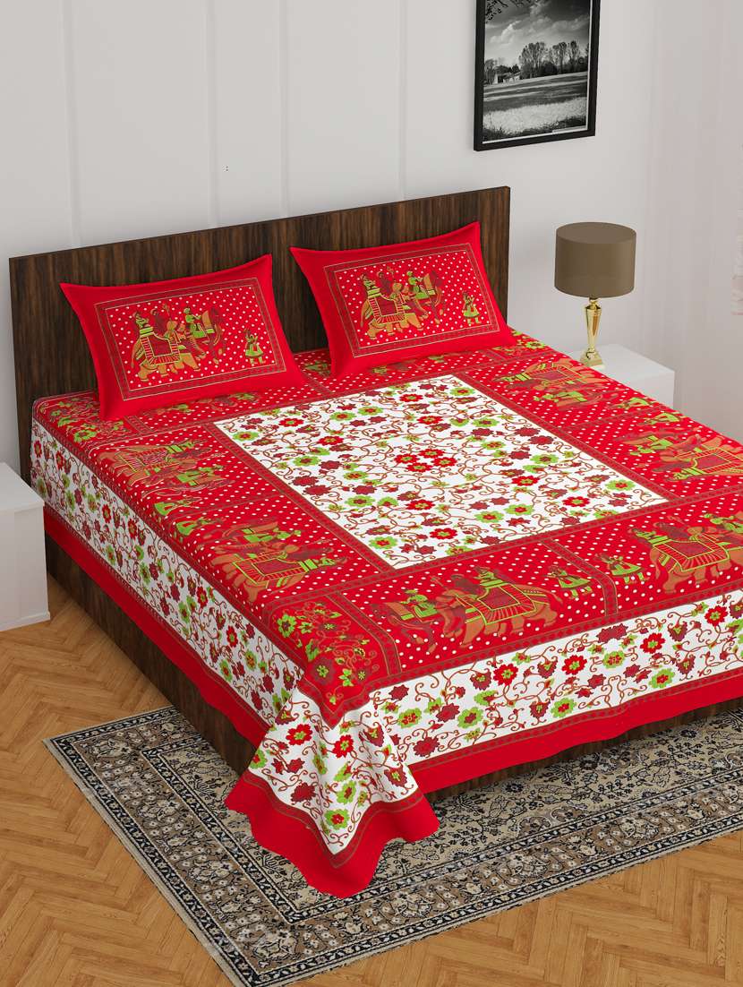 - » divamee jaipuri print cotton double bedsheet with 2 pillow covers -color resistance-size 85x90 inchs