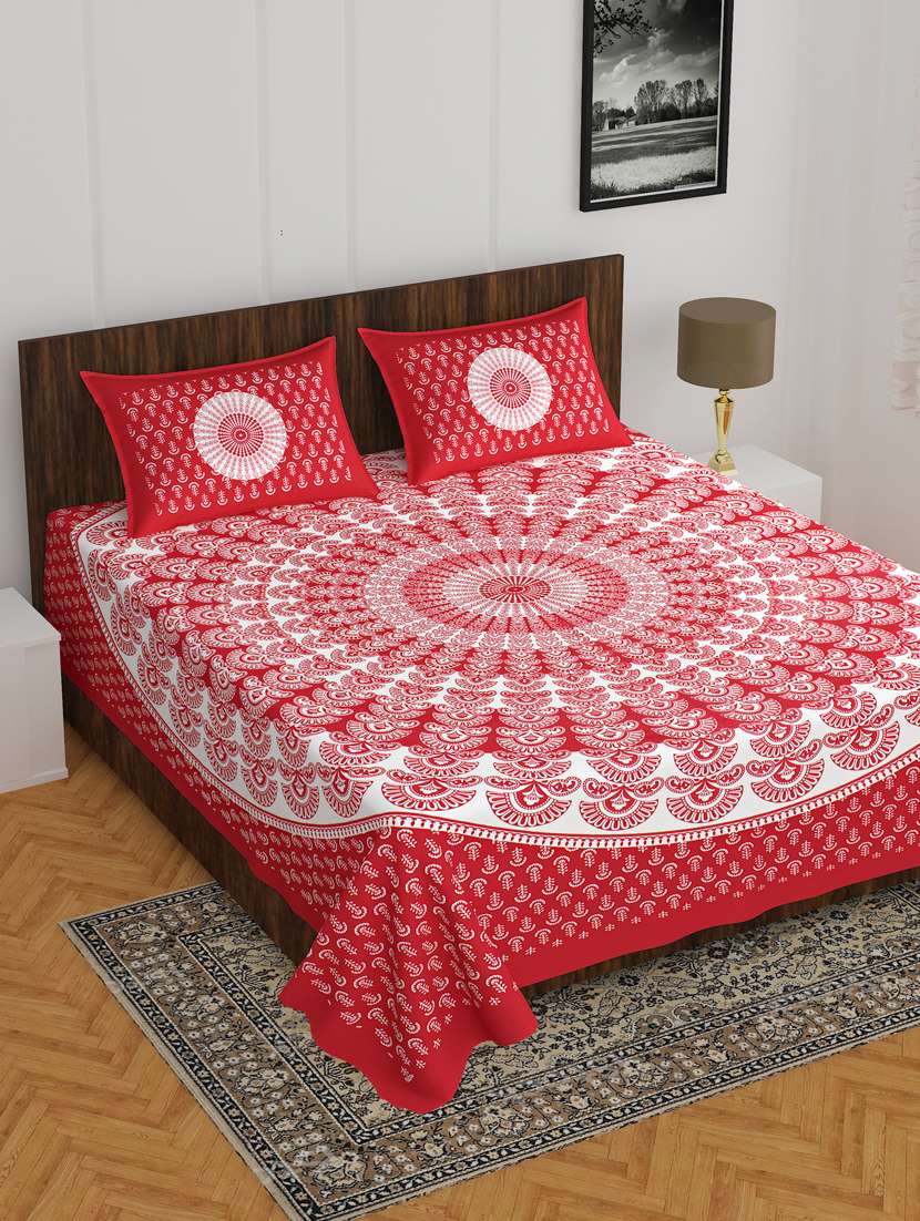 divamee jaipuri print cotton double bedsheet with 2 pillow covers -color resistance - 18210124 - Very Small Image - 1