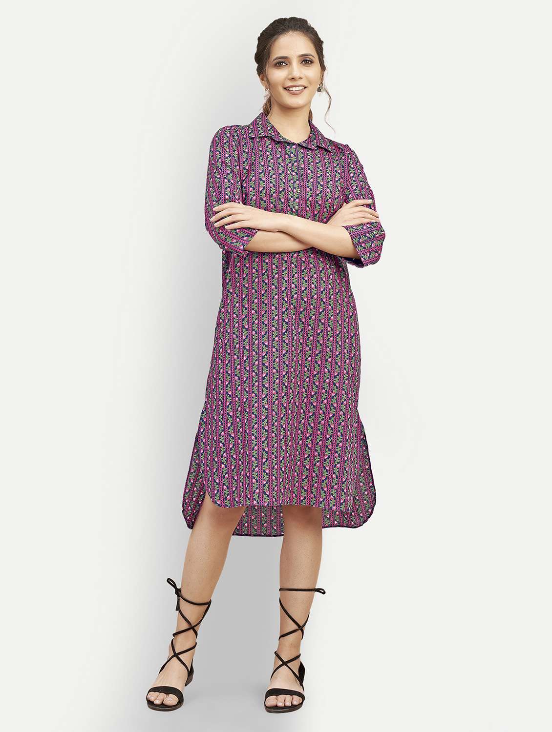 navy blue floral shirt dress - 20319018 - Very Small Image - 1