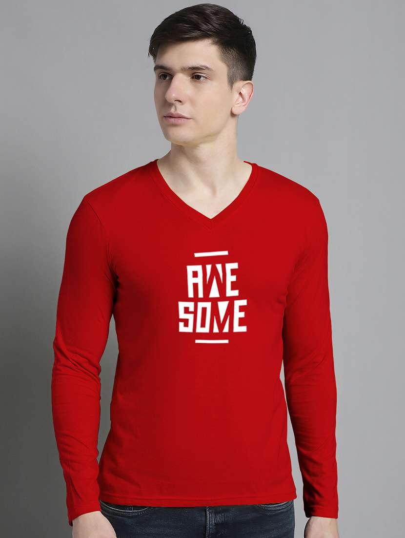 men red cotton chest print t-shirt