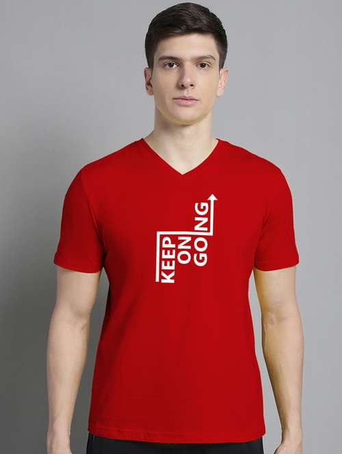 - » men red cotton chest print t-shirt