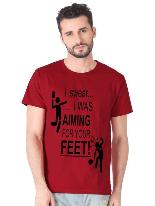 - » maroon front print t-shirt
