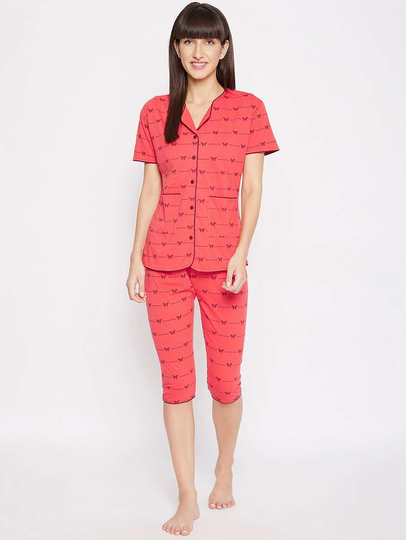 shirt collar printed nightwear pajama set - 17976195 - Very Small Image - 1