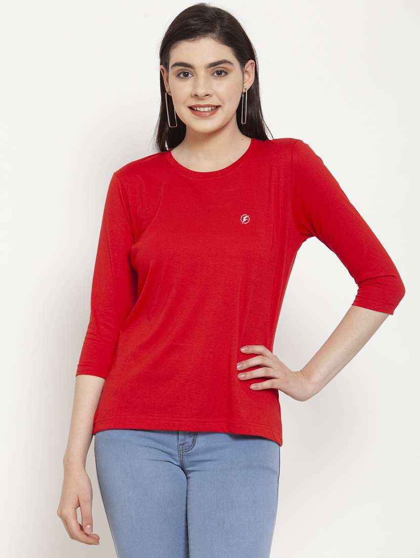- Get ready to adorn some funky tees! LimeRoad brings to you the finest collection of tees from Friskers and that too in red colours.
