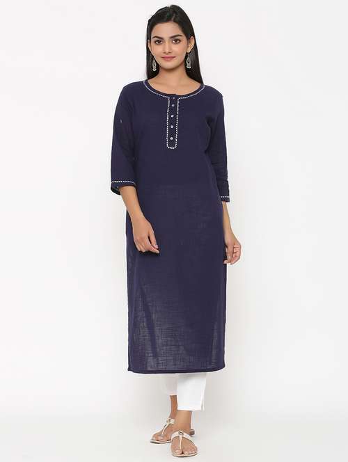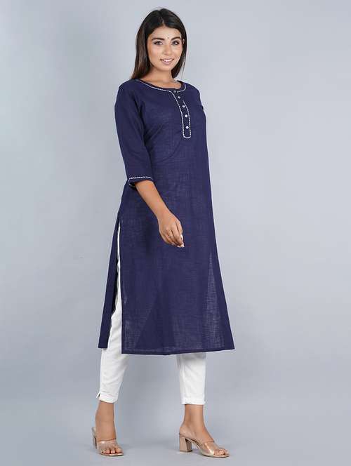 - Grab this beautiful kurta made up of cotton fabric featuring pretty neck designs.