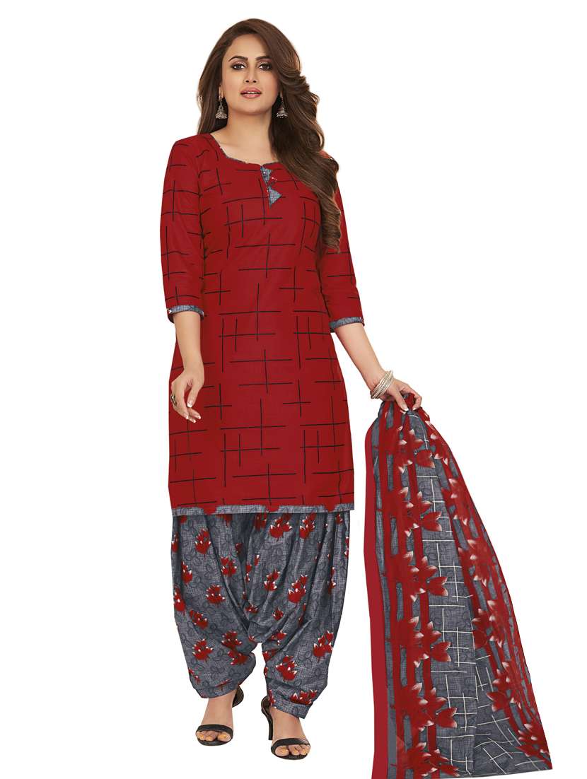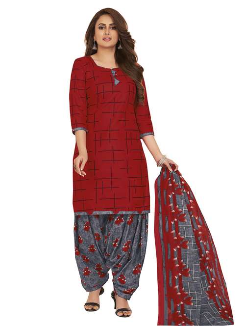 - Look ultra gorgeous in unstitched suits from Ganpati Cotton Suits and grab these beautiful suits in red colour.
