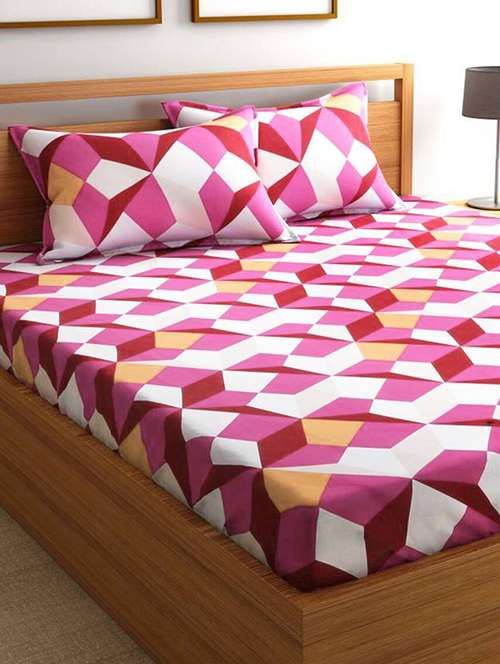 - » good homes triangle 144 tc cotton double bed sheet with 2 pillow covers- blue