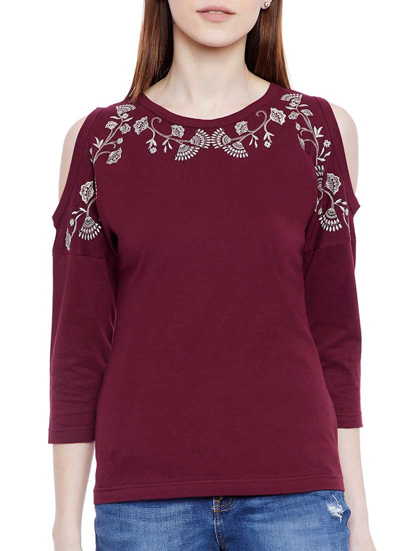 - » cold shoulder embroidered top