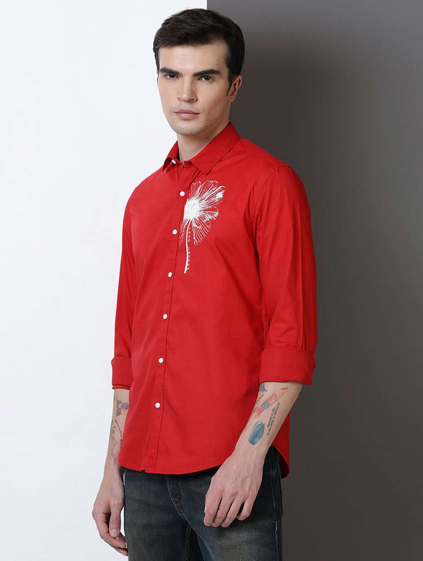 men placement print long sleeve regular fit casual shirt