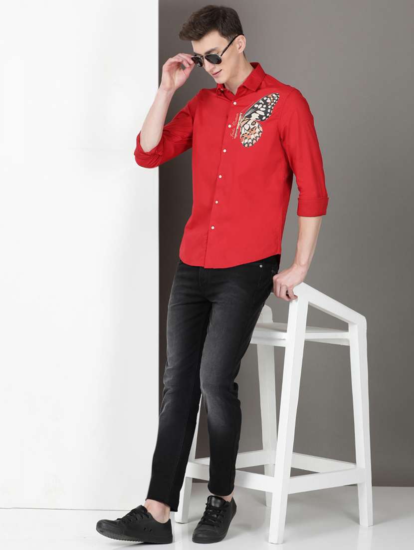 men placement print long sleeve regular fit casual shirt
