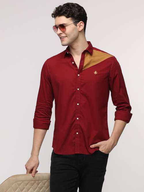 - » men color block long sleeve regular fit casual shirt