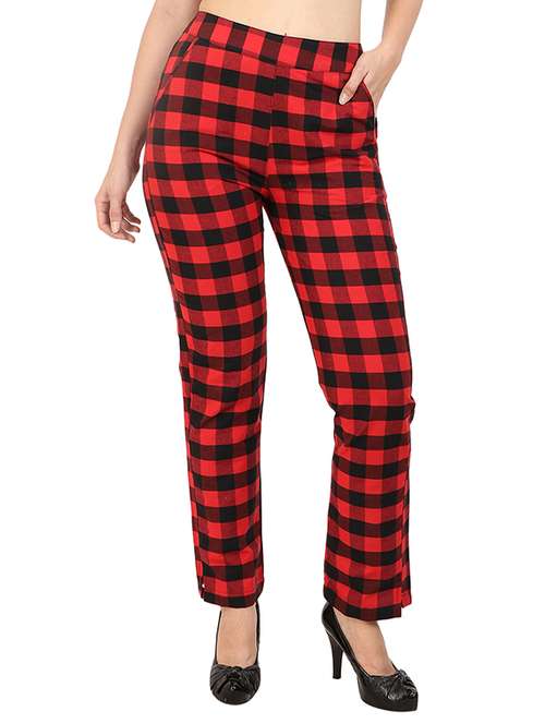 women checkered cigarette pant