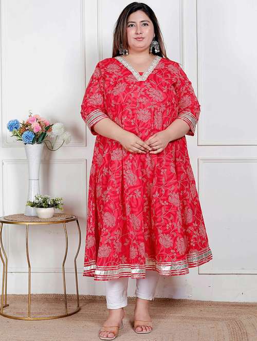 - » women plus size floral three quarter sleeve anarkali kurta