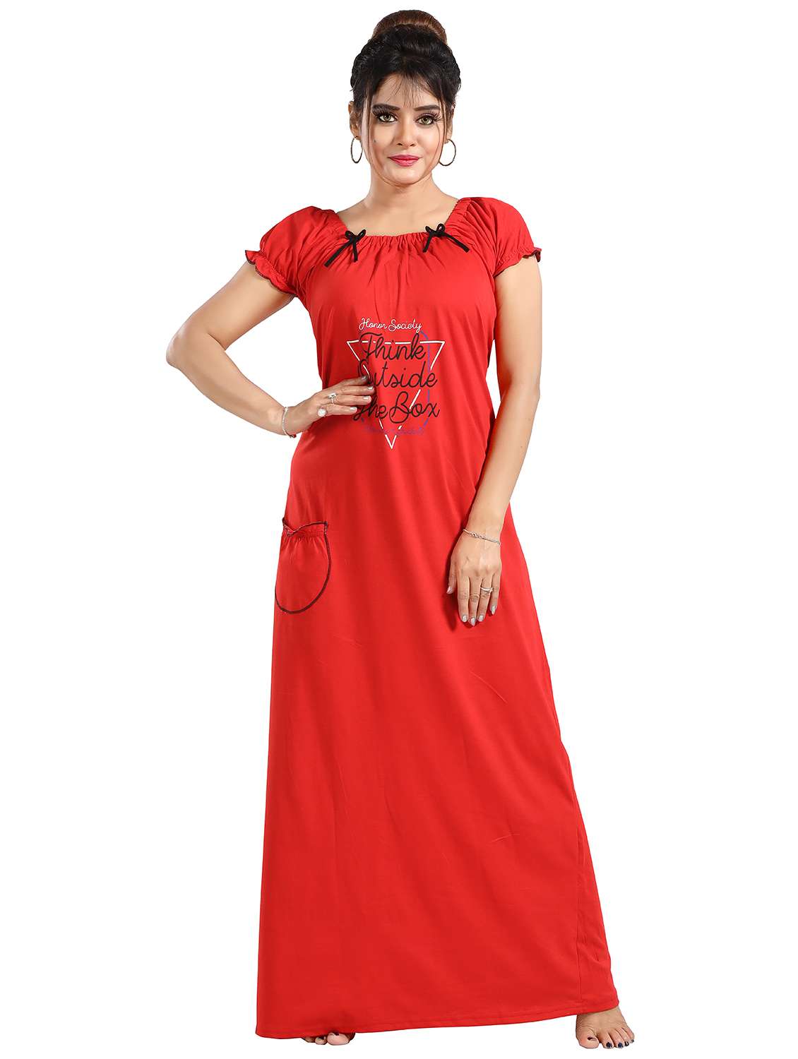 women printed short sleeves nighty
