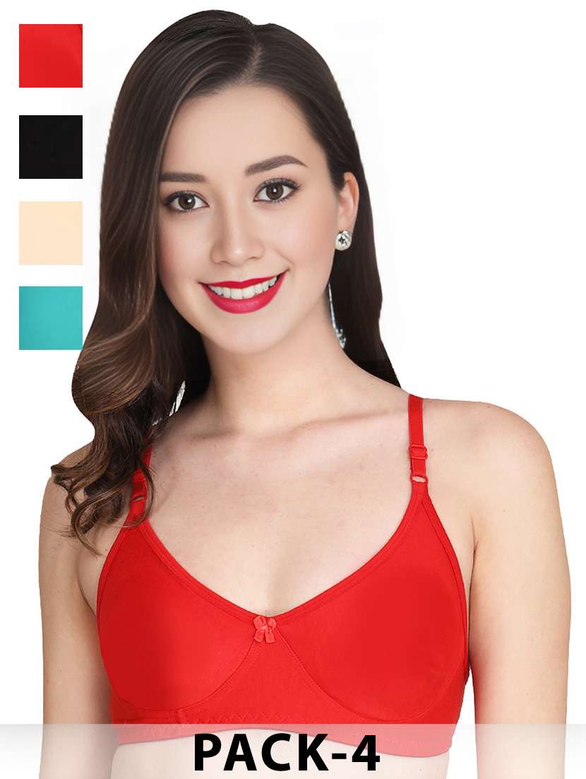 Liigne Women Everyday Padded Bra (Pack Of 4) - Made of Pure Cotton Full Coverage Non Wired Pushup Soft Cup for T-Shirt Saree Dress Sports Garment for Daily Use Everyday